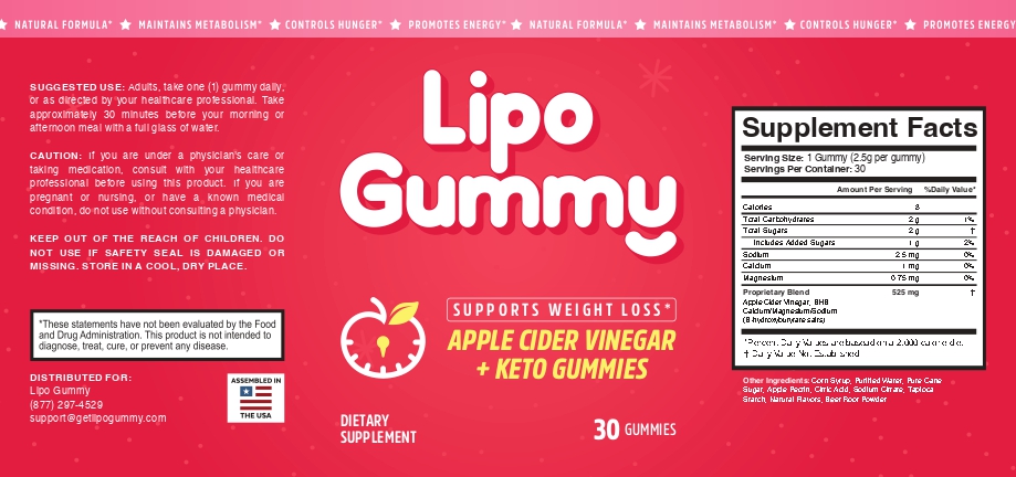 Lipo Gummy is a 100% natural weight loss solution designed to help you shed pounds effortlessly, boost metabolism, and curb cravings. It enhances your body's natural fat-burning processes, leading to a slimmer and healthier you.